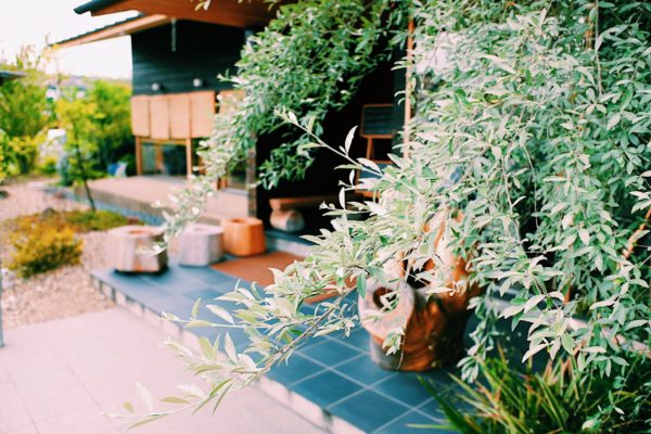 木を基調とした造りに、青々とした木々が温かい色を添えます。