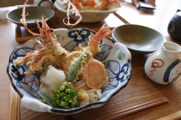 天ぷらうどんか天ぷらそばのどちらかを選べますが、夏は冷たいおろしうどんが嗜好。